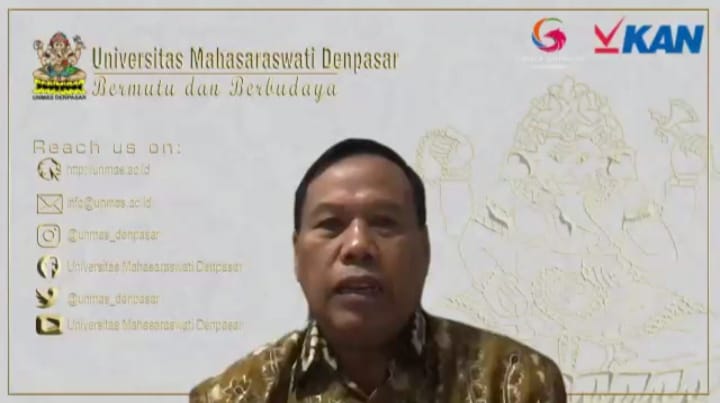 DENPASAR, lintasbali.com – Rektor Universitas Mahasaraswati (Unmas) Denpasar, Dr. Drs. I Made Sukamerta, M.Pd. membuka gelaran seminar nasional pada hari Jumat (8/10/2021) secara daring.