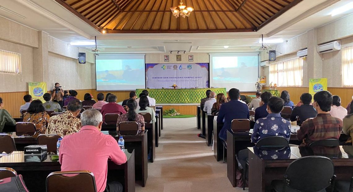 Denpasar – Universitas Udayana (Unud) dan Kementerian Kesehatan RI (Kemenkes RI) melaksanakan Seminar sekaligus Sosialisasi Kampus Sehat dengan tema “Mewujudkan Budaya Sehat dari Kampus” yang berlangsung secara luring, bertempat di Aula Wiswakarma Gedung Fakultas Teknik Unud Kampus Sudirman Denpasar, Kamis (01/9/2022).