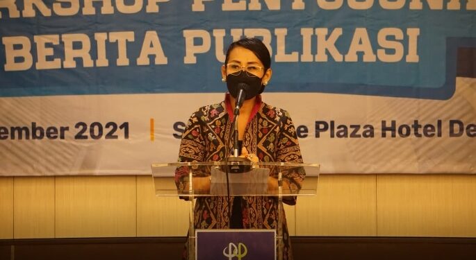 Tjok. Istri Priti Mahendradevi, S.Tr.Par. dari TVRI Bali dengan materi “Teknik Penyusunan Berita”.