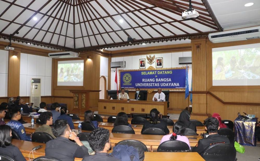 Mangupura – Sosialisasi dilaksanakan di Ruang Bangsa Gedung Rektorat Kampus Jimbaran dan dihadiri oleh Wakil Rektor Bidang Kemahasiswaan, Kepala BKM, Para Wakil Dekan Bidang Kemahasiswaan, Ketua UPO serta mahasiswa, Senin (12/9/2022).