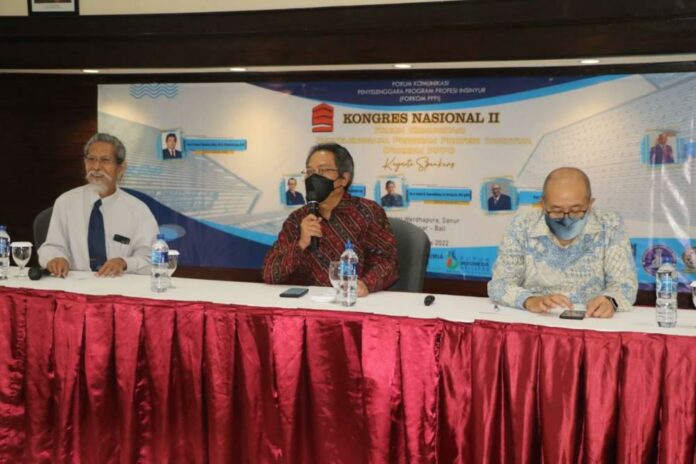 Denpasar – Universitas Udayana melalui Program Studi Program Profesi Insinyur menjadi tuan rumah pelaksana Kongres Nasional II Forum Komunikasi Penyelenggara Program Profesi Insinyur (Forkom PPPI) se-Indonesia yang berlangsung pada jumat (19/8/2022) bertempat di Hotel Werdhapura Sanur Denpasar.