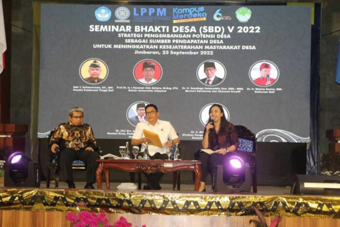 Mangupura – Universitas Udayana melalui Lembaga Penelitian dan Pengabdian Kepada Masyarakat (LPPM) menggelar Seminar Bhakti Desa (SBD) V Tahun 2022 serangkaian dengan perayaan Dies Natalis ke-60 dengan tema ‘Strategi Pengembangan Potensi Desa sebagai Sumber Pendapatan Desa Untuk Meningkatkan Kesejahteraan Masyarakat Desa’.