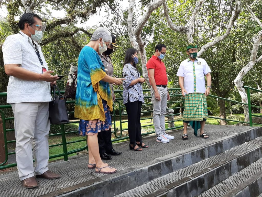 Pengecekan Lapangan ditutup dengan Verifikasi Lapangan di Taman Wisata Pura Taman Ayun yang langsung disambut dengan ramah oleh Penglingsir Puri Mengwi, Bapak Anak Agung Gde Agung, yang juga mantan Bupati Badung dan anggota DPD RI. Beliau menyampaikan bahwa kompleks Pura Taman Ayun yang dibangun oleh leluhur beliau ternyata sudah memperhatikan konsep physical distancing dan menjaga kesucian pura dengan dibangunnya kolam mengelilingi areal pura dan utama mandala. Pengunjung hanya diijinkan sampai di madya mandala namun tetap bisa menyaksikan kegiatan upacara di utama mandala. Beliau juga langsung mengantar team dan Bapak Wakil Bupati meninjau kesiapan Taman Wisata Pura Taman Ayun dan menunjukkan Documentary Room berlayar lebar. (Red/LB/Astama)