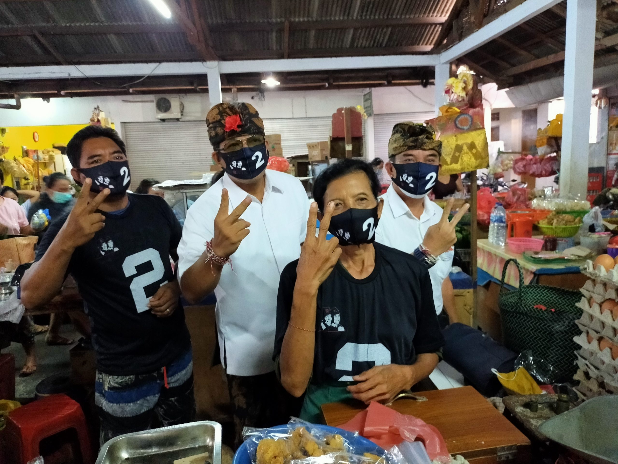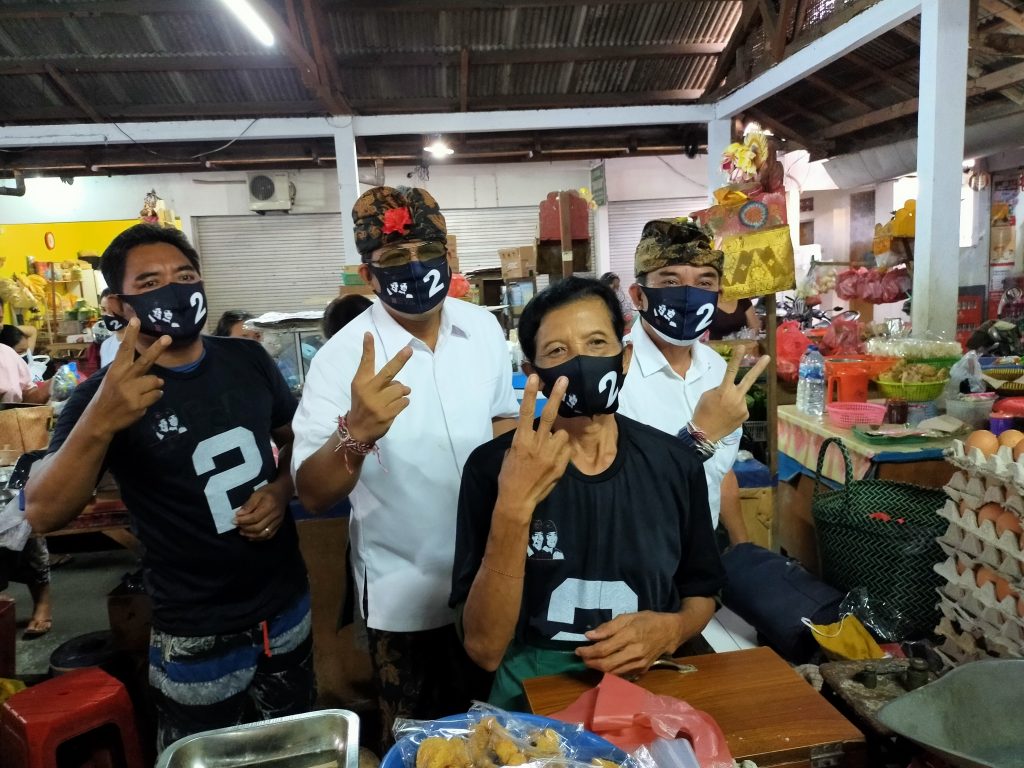 Paslon AMERTA berphoto bersama dengan pedagang di Pasar Teman Sari Banjar Puseh Pedungan, Rabu (18/11)