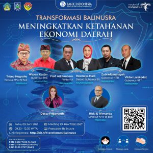 Webinar ini merupakan sarana pihak yang berkompeten untuk berdiskusi, bertukar pikiran dan menyampaikan gagasannya mengenai Transformasi Balinusra. Kami menghadirkan orang no 1 dari tiap daerah Balinusra, juga orang no 1 dari Universitas Indonesia dengan Keynote Speaker Deputi Gubernur Bank Indonesia.